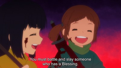 And that’s kinda noble, but it also throws out wild ideas like the concept of “leveling up” your Blessing, which can only be done by killing people. That definitely seems normal and sustainable for a society.