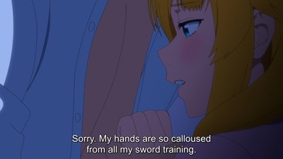 The term “Girlfriend Fantasy” gets thrown around a lot, and while that could apply to Rit, I prefer the term I saw somebody use to describe her as “Post-Tsundere.” The couple had their cliché hero/princess story arc years in the past, and now that they’re effectively retired all that’s left is to move in together.
